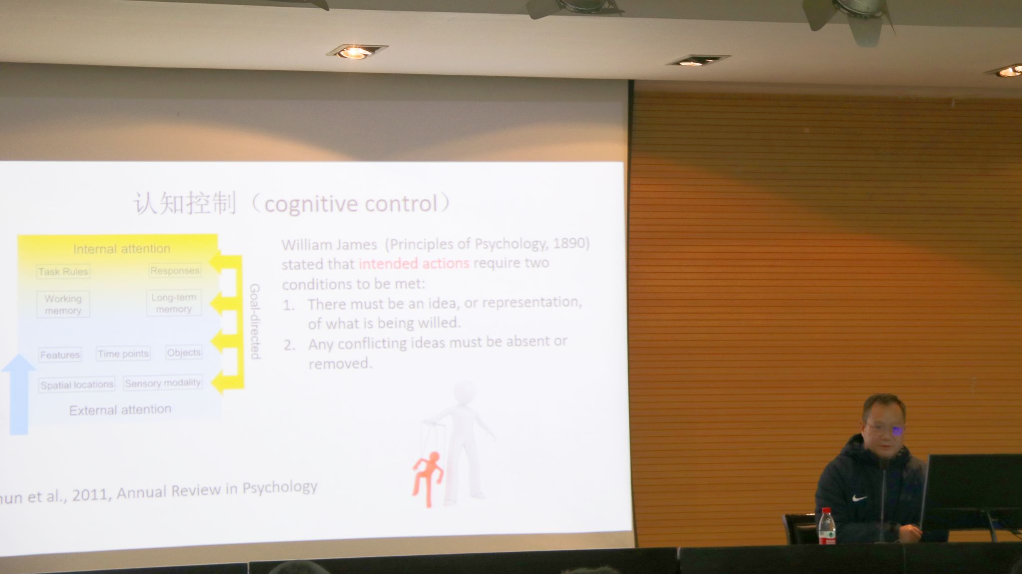 在本次讲座中,陈安涛教授系统介绍了冲突适应、错误后调整以及工作记忆对注意引导的含义及前人的相关研究,细致地梳理了每个领域的主流理论和争议,并针对过往研究的不足提出了自己感兴趣并有价值的研究问题。陈教授首先介绍了其团队采用基于观察他人冲突的新设计,在控制先前试次反应干扰的情况下,揭示了较为纯净的冲突适应效应的神经动力学机制。其次,介绍了其在错误引发的认知控制方面的工作,他们通过操纵反应到刺激的时间间隔并结合脑电技术阐明了错误后调整的神经动力学机制。最后,陈教授介绍了他们在工作记忆对注意引导的神经机制方面的工作。