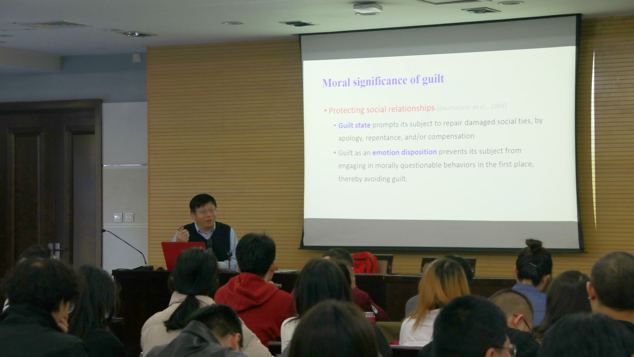 在本次讲座中,周晓林教授系统介绍了内疚和其它社会情绪对后续行为产生的影响,内疚情绪所具有的特定的神经基础,以及内疚情绪与人格特质之间的关系,对以往研究所采用的方法及结果进行了细致地梳理并提出以往研究的不足之处。周晓林教授介绍了其团队通过将内疚情绪后产生的两种动机选择倾向,在决策框架下利用鼠标追踪任务,针对每种动机产生的时间及其发展的动态过程,得出趋近和回避动机可以同时存在,但二者之间存在竞争,而伴随着责任升高,回避动机的作用则更为明显。揭示了相互竞争的社会动机如何演变进而决定社会决策以及动机是如何调节一般决策动态的。