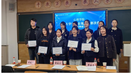决赛共设主题陈述和评委提问两个环节。比赛过程中,参赛同学结合PPT展示和现场讲解,从基本信息、职业认知、胜任能力、职业经历、未来规划等方面,展示自己对未来职业生涯的规划,畅想个人职业蓝图。评委老师们围绕选手的自我探索思路、职业探索有效性和目标定位科学性等方面展开点评,给出了如多深入了解目标岗位的具体要求、突出与意向岗位相关的经历与能力、学会扬长避短等建议,帮助选手们进一步明确在校期间学习方向与未来就业方向。经过激烈角逐,两个赛道分别评出一等奖3名、二等奖5名、三等奖12名,由评委老师为获奖选手颁发荣誉证书并合影留念。