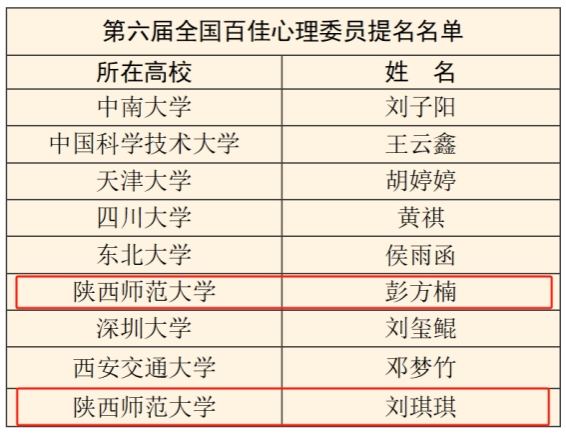 近日,由中国心理学会心理危机干预工作委员会、全国高校心理委员研究协作组组织评选的第六届“全国百佳心理委员”及“全国百佳心理委员提名奖”揭晓。