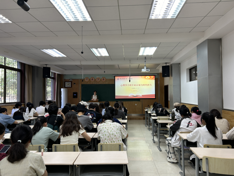 何宁从心理学专业的角度出发,深入分析了新时代背景下心理学子所应具备的专业素养。她强调,心理学子不仅要掌握扎实的专业知识,更要具备敏锐的洞察力和批判性思维,能够运用心理学原理和方法解决实际问题。此外,何经理还鼓励大家要关注社会热点,积极投身社会实践,将所学知识转化为服务社会的实际行动,希望同学们不仅要努力成为专业领域的佼佼者,更要成为社会责任的担当者。在当前社会变革的大背景下,心理学子应当积极关注社会问题,运用心理学知识为构建和谐社会贡献自己的力量。