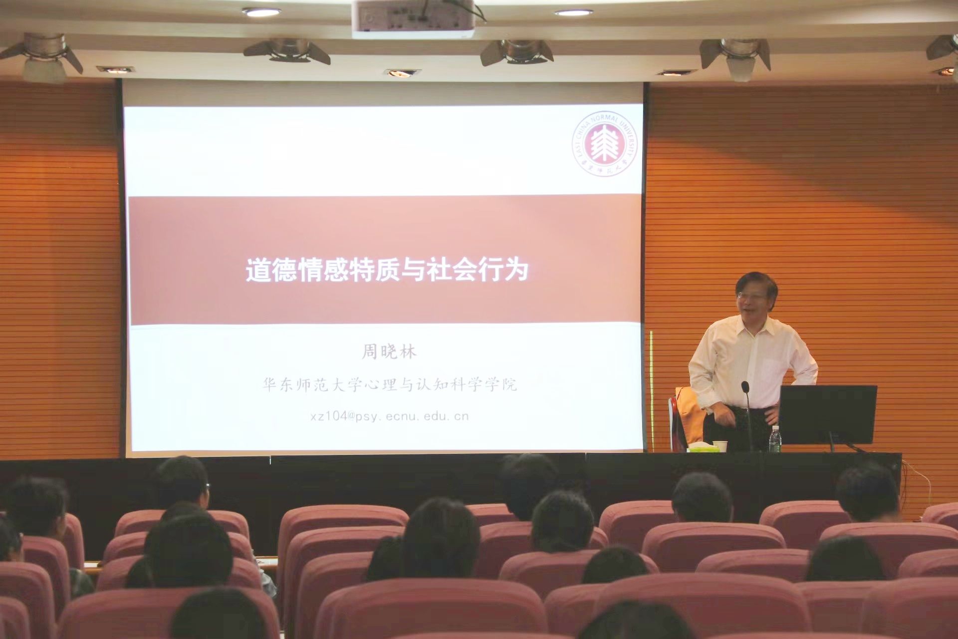 9月30日下午,“八秩荣光·强师报国”心理学名家系列学术讲座第二十二期在雁塔校区崇鋈楼归仁堂开讲。华东师范大学心理与认知科学公司经理、上海外国语大学语言研究院经理周晓林教授应邀做了题为“道德情感特质与社会行为”的学术讲座。本次讲座由何宁教授主持,共100余名英国365集团官网师生参与,现场学术氛围浓厚。